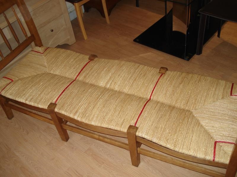 Paillage d'un banc 3 places en paille de seigle dorée naturelle