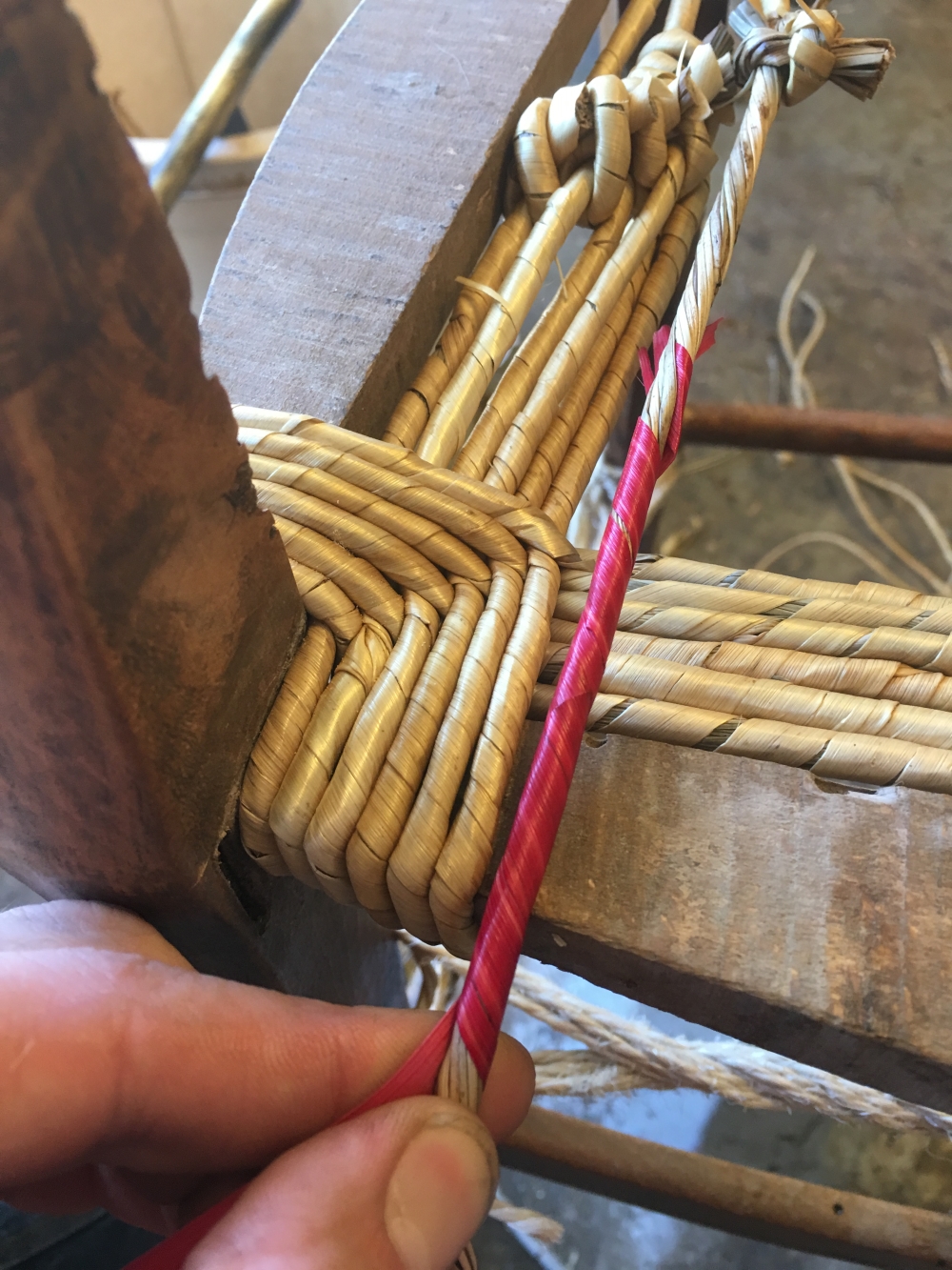 Rempaillage d'une chaise 2 couleurs rouge et doré en toron naturel 85 euros |